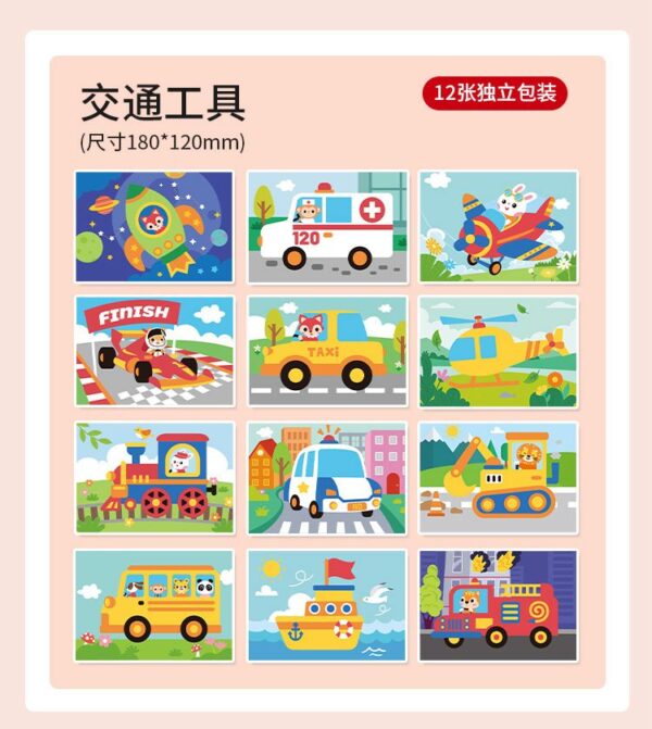 High-quality 3D sticker painting, children’s craft materials kit, educational toy(12 Pcs)