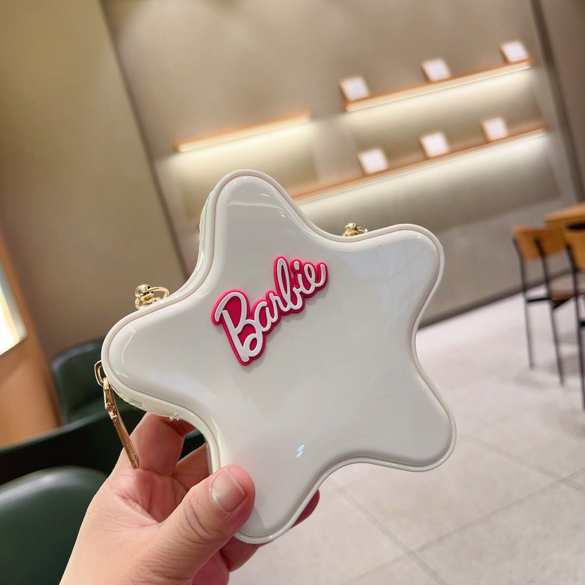 স্টাইলিশ স্টার-শেপড বার্বি হ্যান্ডব্যাগ ছোট্ট মেয়েদের জন্য পারফেক্ট। বেগুনি, গোলাপি, হলুদ ও সাদা রঙে পাওয়া যায়, গোল্ডেন চেইন স্ট্র্যাপ সহ এটি পার্টি বা দৈনন্দিন ব্যবহারের জন্য আদর্শ।